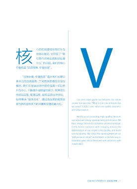 始终秉承“绩效文化”,通过高品质的服务实 Our core values guide our behavior. Our values