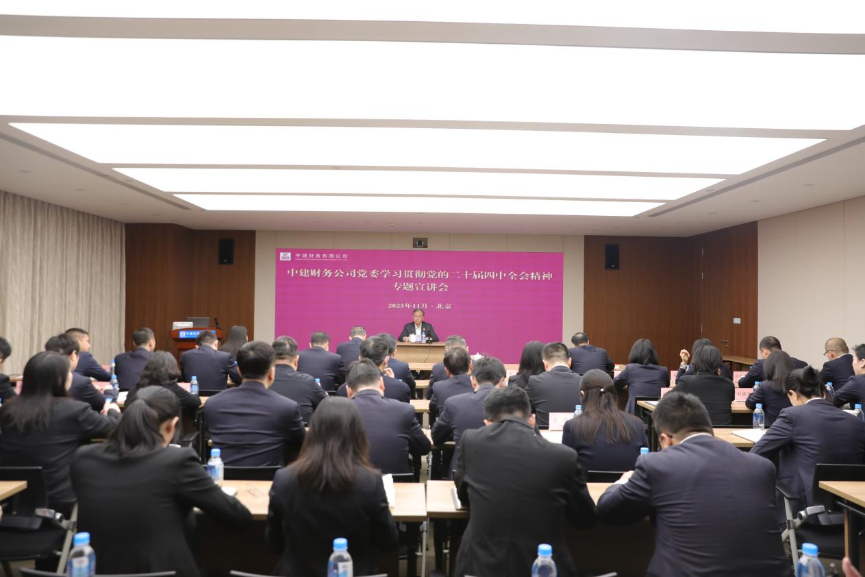 11月21日,中建财务公司党委举办学习贯彻党的二十届四中全会精神专题宣讲会。公司党委书记、董事长刘宇彤作专题宣讲,带领公司全体员工再学习再领会党的二十届四中全会精神,就学习宣传和贯彻落实工作进行部署安排,推动公司上下把思想和行动切实统一到党中央决策部署上来,认真谋划推进“十五五”时期重点任务,为集团高质量发展和中国式现代化建设作出更大贡献。公司党委委员参加宣讲会。